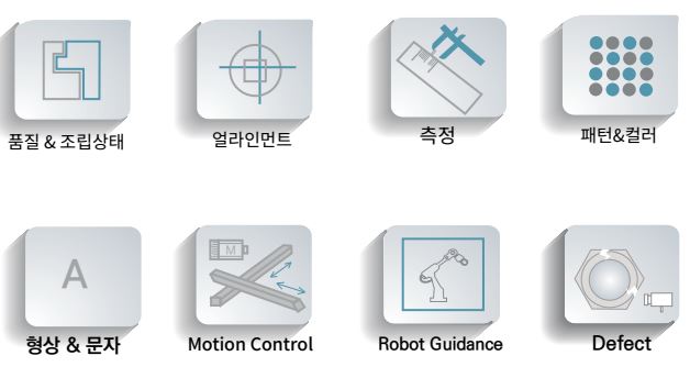 품질, 얼라인먼트, 측정, 패턴&컬러, 형상&문자, 모션컨트롤, 로봇가디언스, 디펙트